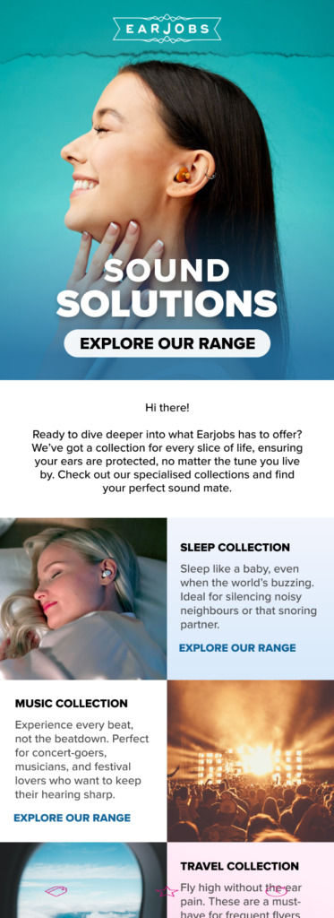 Earjobs had previously relied on irregular, generic campaigns that failed to connect with their audience. To create more meaningful engagement, we introduced highly targeted monthly campaigns crafted around key subscriber behaviours, purchase history, and seasonal trends. Each campaign was designed with a clear objective—whether it was driving repeat purchases, showcasing new products, or rewarding loyalty. By aligning content with the audience’s interests, we saw a consistent boost in engagement, open rates, and click-through rates.
